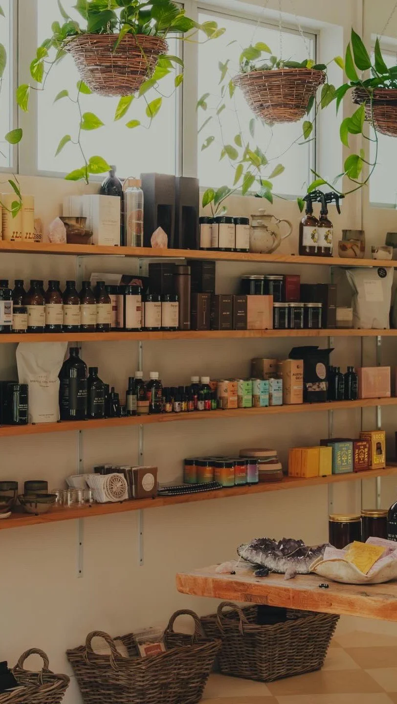Wander through our boutique shelves filled with thoughtfully selected wellness products, natural remedies, and handcrafted treasures—each chosen to support your body, mind, and spirit..